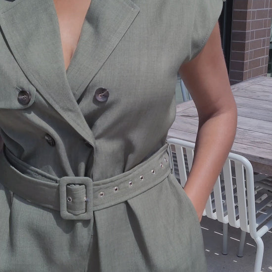 Gretchen | Olive Trench Style Double Button Belted Jumpsuit